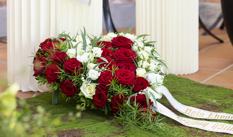 Gemeinsam mit erfahrenen Floristinnen gestalten wir Sargschmuck, Urnendekorationen und Gestecke ganz nach Ihren Vorstellungen. Farben, Formen und Symbole sollen zum Leben des Verstorbenen passen und dem Raum einen würdevollen Rahmen geben.